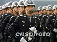 北京市公安局巡察大隊在日前的閱兵式上接受檢閱,同時接受嚴打斗爭第二階段任務。中新社記者 宋吉河 攝