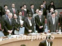 美東時間十二日上午,聯合國安理會召開反恐外長會議。會議開始時,安理會全體起立默哀一分鐘,為當日上午紐約肯尼迪機場飛機墜毀事件中的遇難者表示深切哀悼。中新社記者 陳建 攝