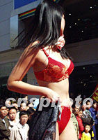 十七日,廣州商業旺地北京路上,一場“內衣秀”吸引著眾多市民駐足觀看,模特們在街上臨時搭起的“T型橋”上,大大方方地向人們展示各款新內衣。中新社圖 羅仰明 攝