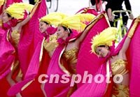 九運會閉幕式文藝晚會《超越夢想》的第一個節目《花城百花開》中的少女們像一朵朵燦爛的鮮花。中新社記者 梁永強 攝