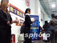 兩位女士十二日在北京國展中心2002年北京圖書訂貨會上分發數字藍皮書的介紹資料。在中國逐步走向信息化的背景下,這套關于信息中國的叢書成了本屆訂貨會的一大熱點。中新社圖 武仲林 攝