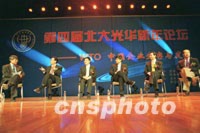 第四屆北大光華新年論壇十二日在北京大學百周年紀念講堂隆重舉行,來自中國政府有關部門領導、著名經濟學家、業界精英聚首一堂,暢談中國入世前景。圖為北京大學光華管理學院副院長張維迎和中國經濟界精英劉曉光、劉永行、丁健、張醒生、陳峰等(從左至右)談入世后中國企業競爭力。中新社圖 武仲林 攝