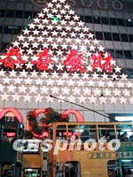 香港鬧市銅鑼灣商廈的新年燈飾“恭喜發財”,在車水馬龍的街道光彩奪目,勉勵自強不息的香港人走出經濟低谷。中新社傳真 洪少葵 攝