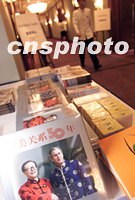 十九日,北京為布什訪華設立的新聞中心準備就緒,反映中美關系三十年發展的書籍擺放在新聞中心供媒體參考。江澤民與布什上海首次會晤的畫面在眾多書籍中頗受矚目。中新社記者 滿會喬 攝