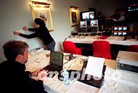 美國總統布什即將來京訪問。設立在北京香格里拉飯店的美國白宮新聞中心二十日已開始緊張地工作。中新社記者 史利 攝
