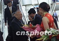 香港特別行政區(qū)行政長官董建華十一日率香港企業(yè)界代表團(tuán)抵達(dá)海南,出席十二日開幕的亞洲論壇首屆年會。中新社記者 滿會喬 攝