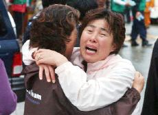 失事飛機上的遇難韓國人家屬擁抱痛哭。法新社圖