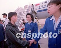 國航工作人員十九日下午與即將赴韓的遇難機組人員的親屬道別。包括八十三名遇難者家屬在內的包機十九日下午六十三十分從北京啟程飛往韓國。中新社圖 鄭萍萍 攝