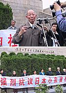 四月二十二日下午,南京大屠殺幸存者、受害者遺屬和社會各界人士兩百多人在侵華日軍南京大屠殺遇難同胞紀念館內(nèi)舉行集會,強烈抗議日本首相小泉于昨日再次參拜靖國神社。中新社圖 楊艷 攝