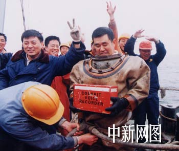 已找到一"黑匣子" 初步判斷為"語音記錄器"(圖) 2002年05月14日 15:50 ![]() 潛水員馬有堅捧著第一個黑匣子(話音記錄器) 宋立仕攝 ![]() 第一個黑匣子(話音記錄器)出水 宋立仕攝 ![]() 中外專家歡慶第一個黑匣子(話音記錄器)出水 宋立仕攝 中新網大連5月14日消息:(記者齊彬)交通部救撈局局長宋家慧說,“5·7”空難失事的麥道-82飛機的一個“黑匣子”已經于今天15時許找到。 今天下午2點05分,煙臺救撈局“煙救撈5號”上的潛水員打撈到了“黑匣子”的信標發射儀。“黑匣子”就是通過信標發射儀來發射信號的。打撈指揮人員判斷,失事飛機“黑匣子”就在信標發射儀附近,隨即派遣潛水員下水探摸“黑匣子”。到下午3時05分,潛水員馬有堅終于將黑匣子打撈上來。 據記者了解,這個“黑匣子”已初步判斷為“駕駛艙語音記錄器”,但指揮部有關人士表示,還需要專家作進一步鑒定才能最后確認。 另外,另一個“黑匣子”目前正在打撈之中。 據了解,飛機上兩個“黑匣子”,一個是“駕駛艙語音記錄器”,另一個是“飛行數據記錄器”,前者記錄時間為25分鐘,后者為25個小時,可循環記錄!昂谙蛔印庇涗浟孙w行員對話及各種飛行數據等資料,對事故原因調查起著決定性作用。正因如此,找到“黑匣子”成為事故調查的重中之重。(完)