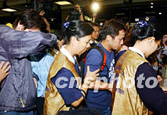 中新社記者現場報道:悲痛籠罩臺北機場(多圖) 2002年05月26日 11:14 ![]() 遇難乘客中5名香港旅客的19名家屬,26日0時30分抵達臺北桃園機場。中新社記者 任晨鳴 攝