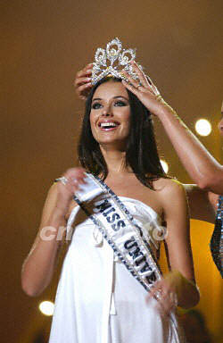 俄羅斯佳麗奪得環(huán)球小姐 中國卓靈榮獲第三(圖) 2002年05月30日 11:53 ![]() 俄羅斯佳麗贏得環(huán)球小姐桂冠 ![]() 中國佳麗卓靈贏得第三名,圖為中國小姐展示晚裝。 中新網北京5月30日消息:當?shù)貢r間29日晚,在波多黎格舉行的環(huán)球小姐選美中,俄羅斯人奧克薩納·費多羅瓦以烏黑靚麗的長發(fā)和優(yōu)雅的風度,擊敗另外74名佳麗,贏得環(huán)球小姐桂冠。 據(jù)法新社報道,奧克薩納·費多羅瓦身穿白色禮服,面帶微笑,步入舞臺,并向現(xiàn)場觀眾飛吻致意。 上屆環(huán)球小姐波多黎格人丹尼斯·吉諾內斯將環(huán)球小姐桂冠交給費多羅瓦。 巴拿馬的烏斯汀·帕塞克獲得亞軍,中國佳麗卓靈贏得第三名。 相關報道:多圖:2002年環(huán)球小姐選美進行晚裝展示 相關報道:組圖:2002世界小姐選美進行泳裝展示 相關報道:多圖:2002世界小姐選美賽進行服裝展示
