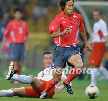 圖:韓國(guó)隊(duì)6號(hào)柳相鐵為韓國(guó)射入第二進(jìn)球