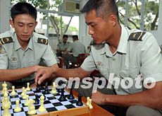 駐守香港新界的中國(guó)人民解放軍陸軍部隊(duì)除了軍事技術(shù)高超外,不少官兵還是國(guó)際象棋高手。任晨鳴 攝