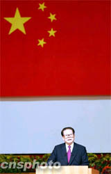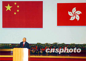 7月1日上午,董建華宣誓就任香港特區第二屆政府行政長官后發表致辭。中新社傳真 任晨鳴 攝