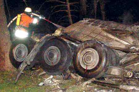 圖文:消防人員撲滅墜毀飛機上的火焰