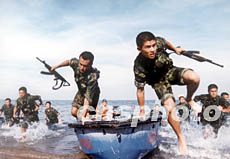 圖:解放軍沖鋒舟武裝搶灘登陸演習(xí)
