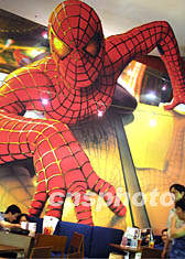 正在上海上映的美國大片《蜘蛛俠》在當地引發一股“蜘蛛俠”熱,不少商店、餐館紛紛借此形象為自己宣傳造勢。圖為申城一餐館的巨型“蜘蛛俠”。湯彥俊 攝