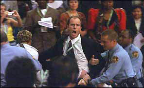 鮑威爾批評津巴布韋受爭議的政策導致該國人民陷于饑荒的邊緣,此話一出,引來反對者的喧嘩。