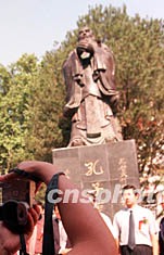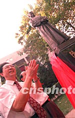 北京師范大學在百年校慶之際為老校長陳桓在校園內立了一座雕像。圖為雕像的揭幕儀式