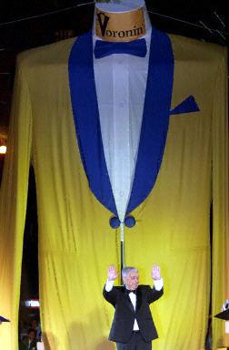 9月8日,烏克蘭時裝設計師展示世界上最大號的男士晚禮服。據悉,這件高10米晚禮服將被載入世界吉尼斯大全。