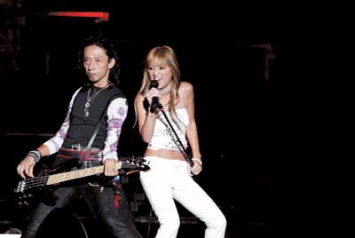 “流行散主”濱崎步是日本眼下最當(dāng)紅的藝人,她壓軸出場,商業(yè)化的包裝和舞臺表演令人眼花繚亂,而其風(fēng)頭被先她出場的李玟所搶走。由于語言和熟悉度的關(guān)系,日方最受歡迎的歌手還是幾年前在中國風(fēng)靡一時的青春偶像酒井法子,雖然已為人母并淡出歌壇多時,但七年后再次來到北京的酒井法子甜美依舊,尤其一首用中文演唱的《我只在乎你》,似乎把時光帶回從前,酒井法子和觀眾都格外激動。