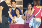 Vanness舉行完簽唱會(huì)之后,昨午已飛返臺(tái)灣。原本Vanness搭下午一點(diǎn)的飛機(jī)離開,但最后改搭三點(diǎn)班機(jī)。Fans不但逃學(xué)來守候偶像,有十名歌迷更搭的士由酒店追到機(jī)場(chǎng)。約兩點(diǎn)十分,帶帽一身牛仔裝束的吳建豪抵達(dá)機(jī)場(chǎng),一下車半百名Fans即鋒擁而上,瘋狂尖叫,更紛紛將禮物遞給他,情況一片混亂,其中一名女歌迷追逐期間還甩掉了鞋子!不過她仍然不理光著腳丫子繼續(xù)死追!