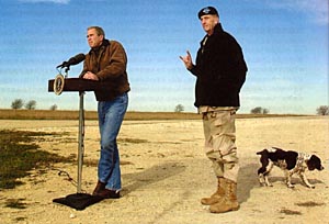 通常,為了接待來訪的外國領導人,布什和夫人勞拉會攜帶兩條白宮第一犬——蘇格蘭獵犬巴尼和小哈巴狗斑點,提前一天返回牧場,以表達盡地主之宜的禮節。