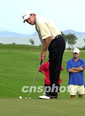 “2002澳門高爾夫球公開(kāi)賽”二十日落下帷幕,本屆奪標(biāo)熱門球星普萊斯獲得亞軍。圖為普萊斯在比賽中。李剛 攝