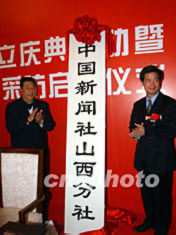 中國(guó)新聞社副社長(zhǎng)兼總編輯郭招金和山西省政協(xié)主席鄭社奎,在歡樂的樂曲和來賓的掌聲當(dāng)中,為中新社山西分社揭牌。中華全國(guó)新聞工作者協(xié)會(huì)有關(guān)負(fù)責(zé)人,以及“華夏文明看山西”港澳臺(tái)記者團(tuán)也參加了此間活動(dòng)。