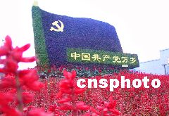 黨的十六大即將召開,濟南市群眾歡欣鼓舞,以各種形式喜迎十六大,這是在濟濼路廣場近日樹起的“鮮花雕塑”。呂廷川 攝