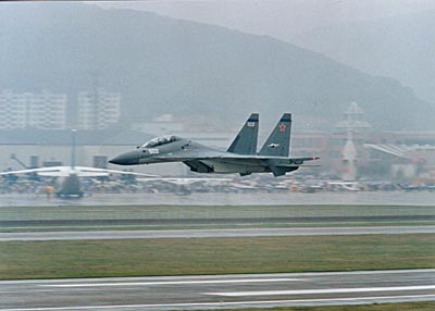 前蘇聯的獨聯體國家在本屆航展上是展出面積最大的外國廠商,首次展出了蘇-30MK戰斗轟炸機和卡-50武裝直升機,安-70軍用運輸機,并冒雨進行了飛行驚險的表演。這都是世界一流的裝備,具有優越的性能和超強攻擊能力,但出于政治和貿易保護的考慮,西方堅決拒絕采購這些極有競爭力的飛機,而俄羅斯軍方又沒有資金采購新機,使俄羅斯航空工業陷入困境。其實整個俄羅斯國防工業都在困難中掙扎,為了獲得急需的資金,俄羅斯公司在航展上推銷各種世界一流的槍械和反坦克導彈。