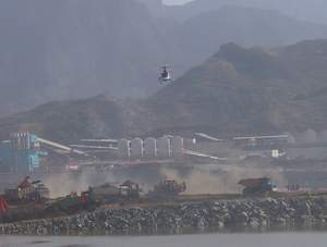 中央電視臺直升機首次飛臨三峽截流工地龍口段上空,是為了進行即將在11月6日舉行的三峽截流直播進行視頻資料的收集,作為最為重要的先期實拍機位,它記錄的是其他機位無法做到的宏觀場面,可以從另一個角度對目前仍在緊張進行的工程進行全景的展現。(阿為)