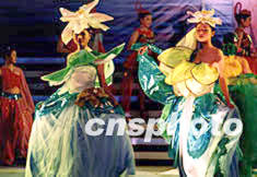 六日晚在福州舉行的“奮飛吧八閩健兒”文藝晚會上,身著“茉莉花”造型時裝的模特,展現“芬芳滿園”。作者:劉可耕