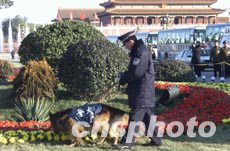 圖:北京警方出動(dòng)警犬為十六大值勤