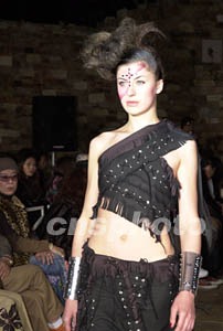 東京十一月舉行的二00三年春夏時裝展佳作紛呈,黑色晚裝顯得酷氣十足。作者:陶光雄