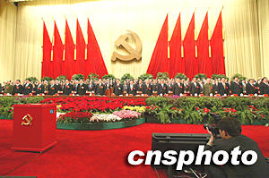 中國共產黨第十六次全國代表大會十四日上午在北京人民大會堂閉幕。會議選舉產生了新一屆中央委員會、中央紀律檢查委員會,并通過關于十五屆中央委員會報告等決議。中新社記者 毛建軍 攝