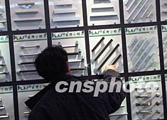 500家海內外廠商二十日匯集北京國際家具展,爭奪日趨火爆的北京家具市場。圖為參觀者對展會上的臺灣小騎兵門把倍感興趣。作者:武仲林