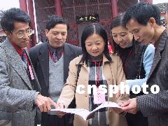 江永女書是世界上獨一無二的女性文字。河南學者王澄溪經過多年研究,終于使這個瀕臨失傳的性別文字登上了書法藝術的大雅之堂。由她編著的《澄溪女書書法字帖》成為世界上第一部女書書法字帖。圖為參加國際女書研討會專家們正在研究這本新出版的字帖。白祖偕攝