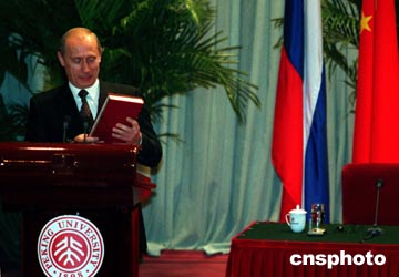 走過百年歷程的北京大學今天迎來一個具有重要意義的歷史時刻,中國國家主席江澤民和到訪的俄羅斯總統普京共同出現在北大講壇上。