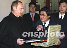 圖:普京獲贈登長城紀念證書