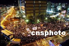 韓國首都漢城舉行萬人游行集會。Ic/cnsphoto 攝