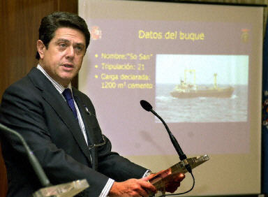 西班牙國(guó)防部長(zhǎng)特里略透露,在船上發(fā)現(xiàn)15枚飛毛腿導(dǎo)彈,還有15個(gè)常規(guī)彈頭和幾十箱化學(xué)品,這些化學(xué)品中包括硝酸。