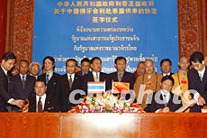 泰王國政府外交部長素拉杰(左)與中國宗教局局長葉小文(右),十四日下午在北京醇親王府簽署“中國政府和泰王國政府關(guān)于中國佛牙舍利赴泰國供奉協(xié)定”書。北京西郊靈光寺佛牙舍利十五日將由葉小文局長帶領(lǐng)的中國護(hù)送團(tuán)護(hù)送至泰國供奉76天。作者:鄒憲
