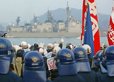 這艘日本軍艦將展開約四個月的任務,主要是保護對美艦等提供海上加油的日本補給艦和航行于當地海域的日本油輪,并針對美軍可能展開對伊拉克的軍事行動擴大對美軍的后方支持。