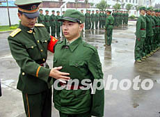 今年入伍的蘇州某大學機電專業學生胡斌在泉州市公安邊防支隊輪訓隊接受訓練。大學生保留學籍、攜筆從戎成為今年邊防新兵的一大亮點。作者:徐喻