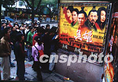 由張藝謀執導的武俠巨片《英雄》二十日在福州上映。影片開映前,電影院門口排起了長長的購票隊伍。作者:鄭祚聲
