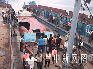 長壽沉船向下游移動近三公里 船頭已打撈出水(圖) (2002-12-22 19:36:17)