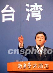 國務(wù)院臺灣事務(wù)辦公室二十五日在北京釣魚臺大酒店舉行新聞發(fā)布會,評價一年內(nèi)兩岸關(guān)系的發(fā)展。圖為新聞發(fā)言人李維一先生在發(fā)布會上答記者問。作者:武仲林