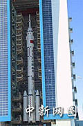 中國酒泉衛星發射中心總裝測試廠房中的"神舟""神箭"組合體